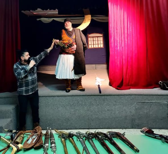 Ο Πρόεδρος του Συλλόγου Μανόλης Σαββίδης και το μέλος του Συλλόγου Θεοδόσης Παπαναστασίου (στο ρόλο του κλεφταρματωλού) έδωσαν την ευκαιρία σε μαθητές και εκπαιδευτικούς να επεξεργασθούν από κοντά μία αυθεντική στολή αγωνιστή του 1821 (μακριά φουστανέλα, τσαρούχια χωρίς φούντα, γκέτες, ζωνάρι, κάπες) όλα αυθεντικά κομμάτια των περιοχών Μάνης και Ρούμελης καθώς και με την αρματωσιά του. Καριοφίλια: όπως ο σισανές (που χρησιμοποιούσε ο Καραϊσκάκης), Ψαράκι (αγαπημένο των Ελλήνων που χρησιμοποιήθηκε πολύ στη Μάχη της Νάουσας), Τρομπόνι (ναυτικό), σουλιώτικο καριοφίλι και πολλά πιστόλια, γαϊταγάνια και άλλα σπαθιά ασημοσκαλισμένα στα εργαστήρια των Ιωαννίνων, της Νάουσας και χωρών της Βαλκανικής.