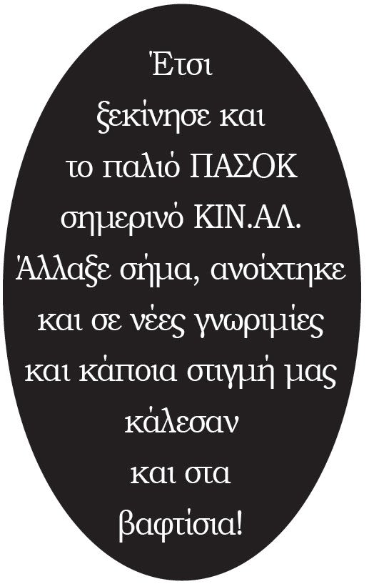 Έτσι ξεκίνησε και το παλιό ΠΑΣΟΚ σημερινό ΚΙΝ.ΑΛ. Άλλαξε σήμα, ανοίχτηκε και σε νέες γνωριμίες και κάποια στιγμή μας κάλεσαν και στα βαφτίσια!