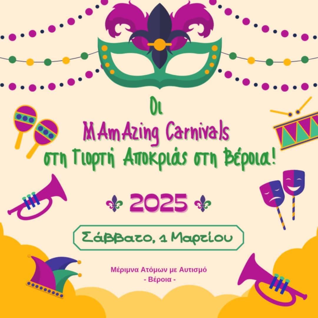 Οι MAmAzing Carnivals, το πολύχρωμο team του συλλόγου μας, θα φορέσει την MAmAzing αποκριάτικη διάθεση και θα συμμετάσχει στην αποκριάτικη παρέλαση που διοργανώνει ο Δήμος Βέροιας, που θα πραγματοποιηθεί το Σάββατο 1 Μαρτίου και ώρα 17:00 επί των οδών Μητροπόλεως και Ελιάς.