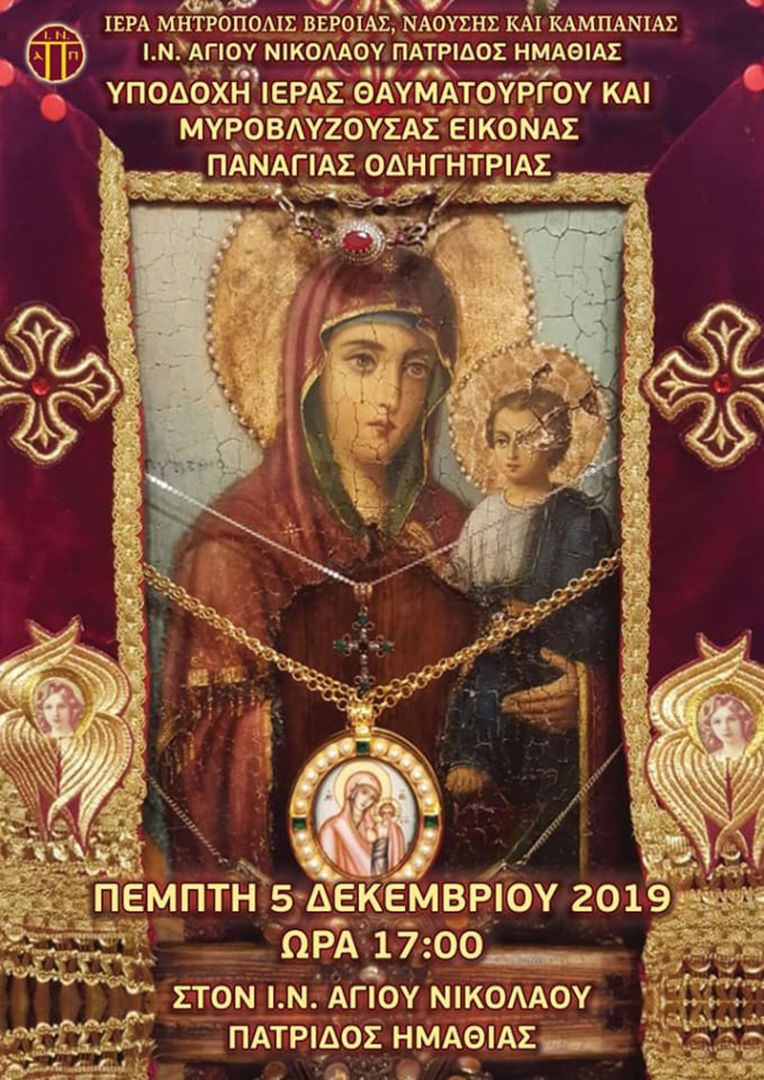 Πατρίδας Ημαθίας, επ’ ευκαιρία της Πανηγύρεώς του, την Πέμπτη 5 Δεκεμβρίου 2019.