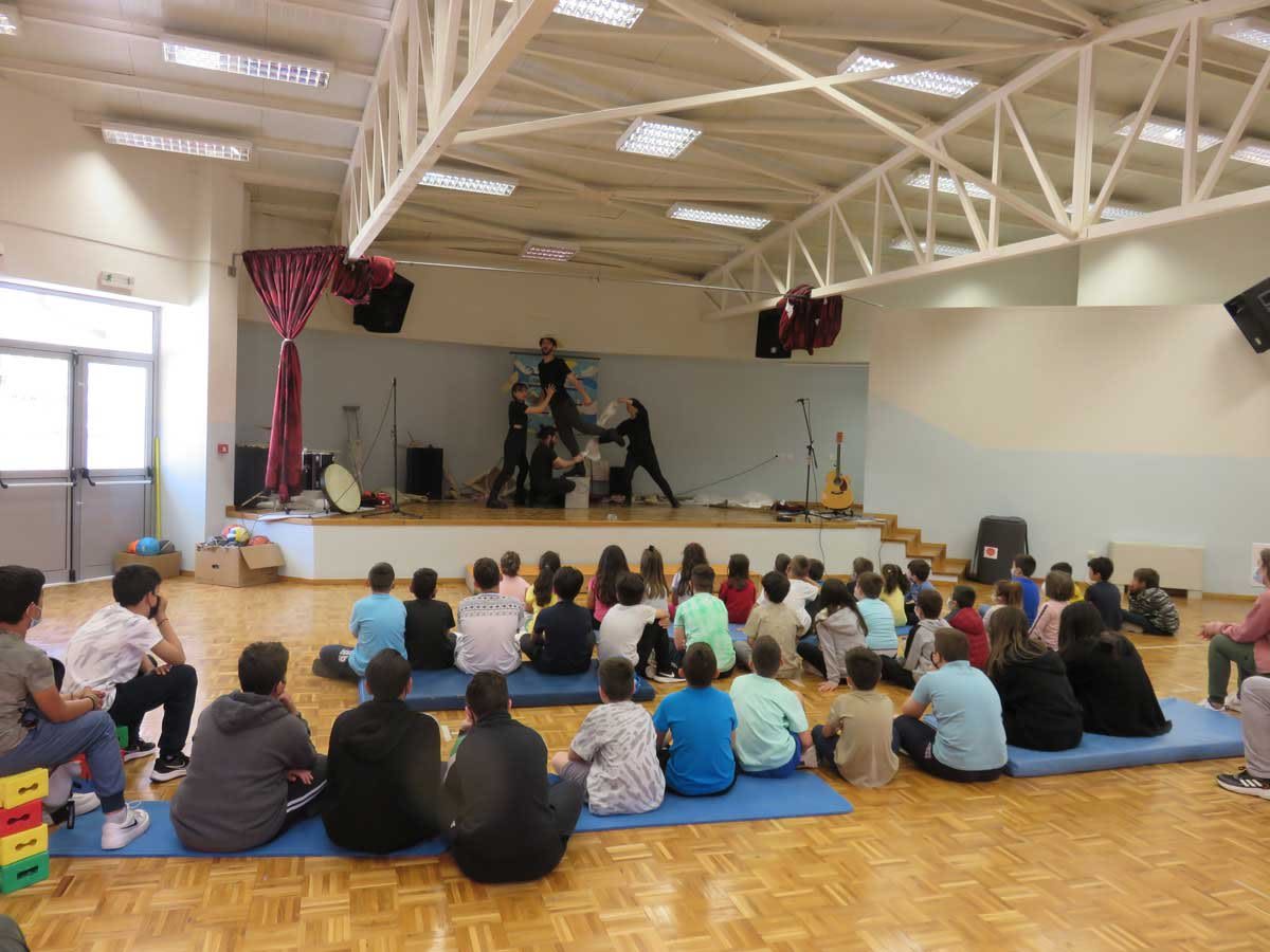 Μία πρωτότυπη, συναρπαστική αναπαράσταση της Οδύσσειας του Ομήρου από την θεατρική ομάδα «μικρός Βορράς» είχαν την ευκαιρία να παρακολουθήσουν την Τετάρτη, 11 Μαΐου 2022 οι μαθητές του Δημοτικού Σχολείου, του Νηπιαγωγείου και της Α΄ τάξεως του Γυμνασίου με Λυκειακές Τάξεις Ριζωμάτων, στην αίθουσα πολλαπλής χρήσεως του Δημοτικού Σχολείου.