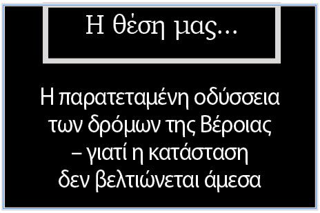 Σε κάθε περίπτωση, όσο συνεχίζεται η παράλληλη εκτέλεση διαφόρων εργασιών, χωρίς κεντρικό και αποτελεσματικό συντονισμό, η επάνοδος μιας ασφαλούς και λειτουργικής οδικής πραγματικότητας στη Βέροια δεν φαίνεται να είναι άμεση υπόθεση. Η έλλειψη σαφούς και ρεαλιστικού χρονοδιαγράμματος από τους φορείς που διαχειρίζονται τα έργα δεν επιτρέπει στους πολίτες να έχουν εικόνα για το πότε θα υπάρξει βελτίωση. Οι κάτοικοι καλούνται να δείξουν υπομονή και προσοχή, όμως η ανάγκη για μια ολοκληρωμένη, οργανωμένη και ταχύτερη αποκατάσταση των δρόμων παραμένει επιτακτική – γιατί η πόλη δεν μπορεί να «ταξιδεύει» για πάντα μέσα στην ομίχλη ενός μόνιμου εργοτάξιου.