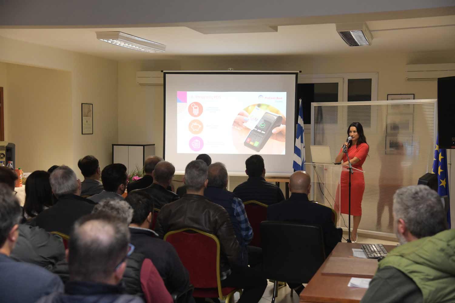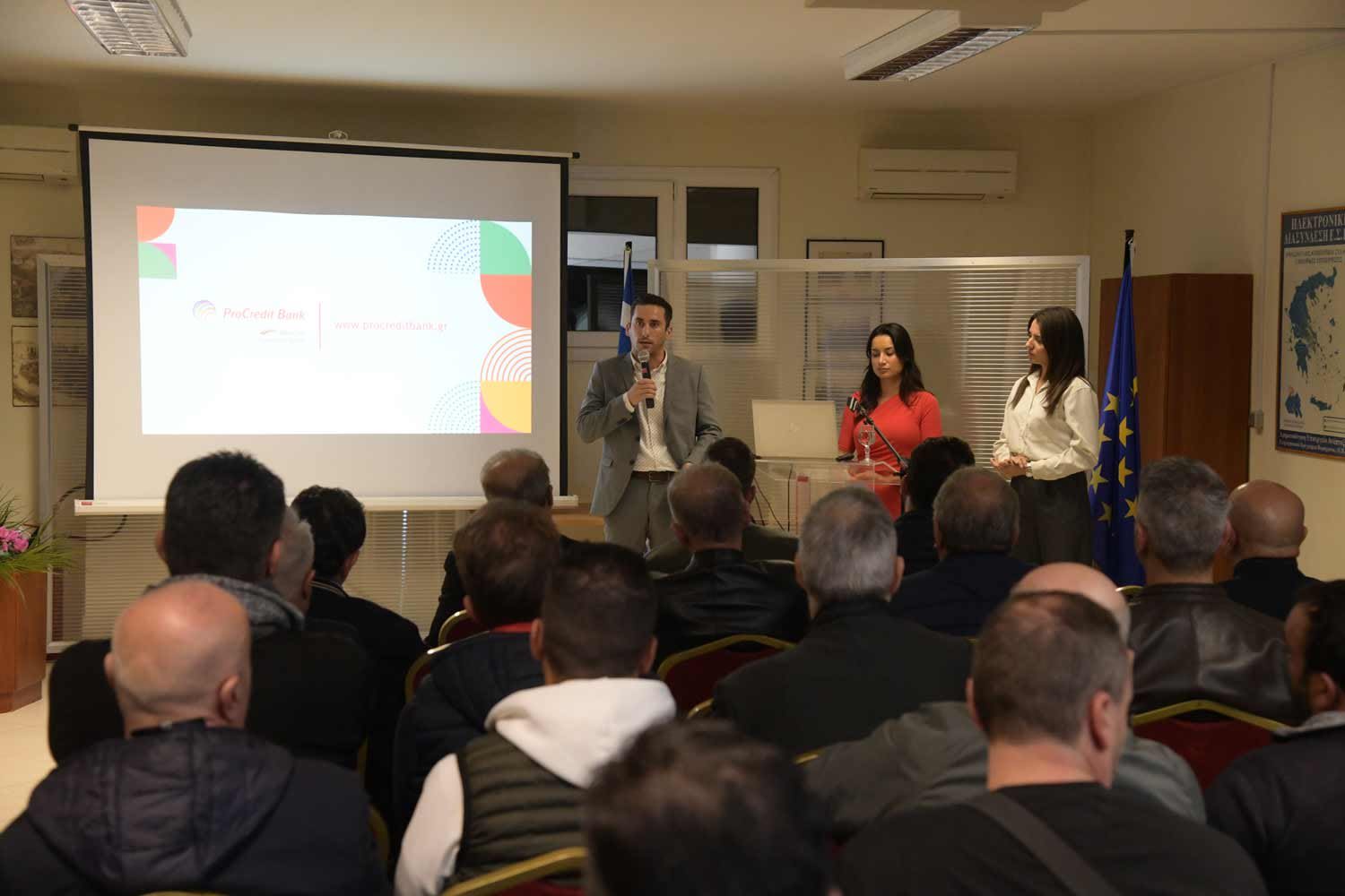 Με τη συμμετοχή εκπροσώπων από όλους τους κλάδους του επιχειρείν της Ημαθίας πραγματοποιήθηκε με επιτυχία πριν απο λίγες μέρες η δεύτερη αποστολή της ProCredit Bank στην Βέροια . Με πρόσκληση της Προέδρου του Εμπορικού Συλλόγου της πρωτεύουσας της Ημαθίας, κυρίας Αθηνάς Πλιάτσικα Τσιπουρίδου, τα στελέχη της γερμανικής αναπτυξιακής Τράπεζας,παρουσίασαν εξειδικευμένες υπηρεσίες για ΜμΕ, ειδικά σχεδιασμένες για τις ανάγκες τους σε ανάπτυξη καθώς και προνομιακά πακέτα συναλλαγών και προϊόντα υψηλής απόδοσης διαθέσιμων κεφαλαίων.