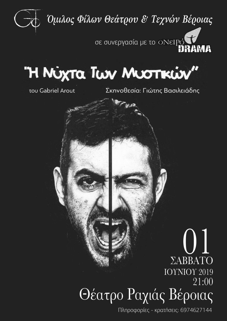 Ο Όμιλος Φίλων Θεάτρου & Τεχνών Βέροιας σε συνεργασία με το Ονειρόδραμα σας προσκαλεί στη θεατρική παράσταση «Η ΝΥΧΤΑ ΤΩΝ ΜΥΣΤΙΚΩΝ» που ανεβαίνει στο θέατρο της Ραχιάς το Σάββατο 1η Ιουνίου στις 9μ.μ.