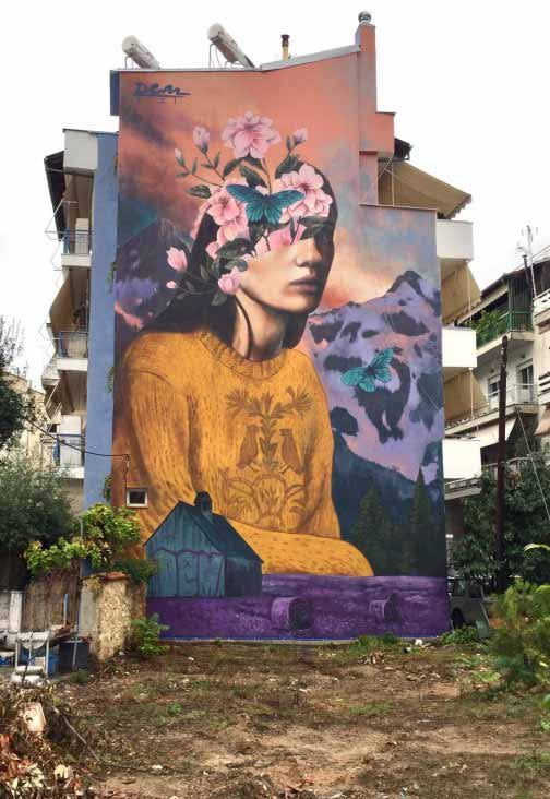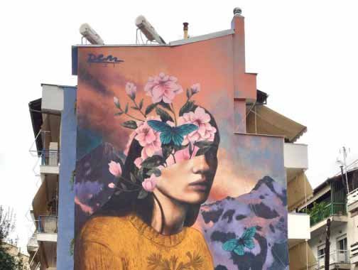 Ο ρομαντικός παρατηρητής που ατενίζει την Βέροια από τα δυτικά της υψώματα, ξεχωρίζει με ευχάριστη έκπληξη, μια αιθέρια γυναικεία μορφή να ξεπετάγεται από τις πολυκατοικίες πίσω από τον πλάτανο της Παλιάς Μητρόπολης και να ορθώνεται πάνω από τις παραδοσιακές στέγες της πόλης. Πρέπει ο παρατηρητής να πλησιάσει αρκετά για να συνειδητοποιήσει ότι η αιθέρια γυναικεία μορφή αντιστοιχεί σε μιά υπερμεγέθη εικαστική απεικόνιση, έναν θεαματικό ζωγραφικό πίνακα, που έχει φιλοτεχνηθεί από καλλιτέχνη αξιώσεων και καλύπτει ολόκληρη την ελεύθερη επιφάνεια της επί της οδού Παλαμά πολυόροφης οικοδομής, κατά την τεχνική «graffiti», που έχει χαρακτηριστεί σαν «η τέχνη του δρόμου». Μακράν απέχει όμως η περιγραφή αυτού του καλλιτεχνικού έργου από τα συνήθη «graffiti» που πρωτοεμφανίστηκαν σαν μία αντίδραση στο κατεστημένο, στην ησυχία των κατοίκων της πόλης και στη μουντάδα των τοίχων, ενώ ως αυθόρμητη εικαστική έκφραση εντάχθηκαν στο φαινόμενο της σύγχρονης λαϊκής κουλτούρας των αστικών κέντρων. Στην πόλη της Βέροιας συναντώνται σε πολλές ελεύθερες επιφάνειες δημιουργίες «graffiti», κυρίως με συνθηματικές επιγραφές, αλλά και εικαστικές συνθέσεις λιγότερο η περισσότερο επιμελημένες, ενώ ενδιαφέρουσες απεικονίσεις συναντώνται στις προσόψεις επαγγελματικών χώρων με σκοπό την προβολή τους.