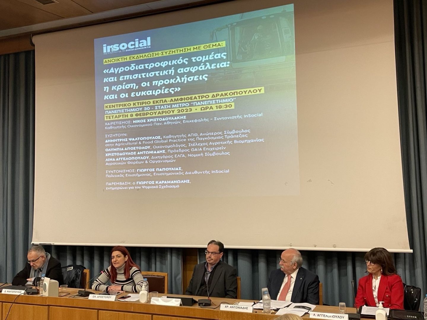 Μια ιδιαίτερα ενδιαφέρουσα ημερίδα για την επισιτιστική κρίση και την ανάπτυξη του αγροδιατροφικού τομέα στην Ελλάδα πραγματοποιήθηκε στο Πανεπιστήμιο Αθηνών από το Ινστιτούτο για τη Σοσιαλδημοκρατία InSocial,την Τετάρτη 8 Φεβρουαρίου.