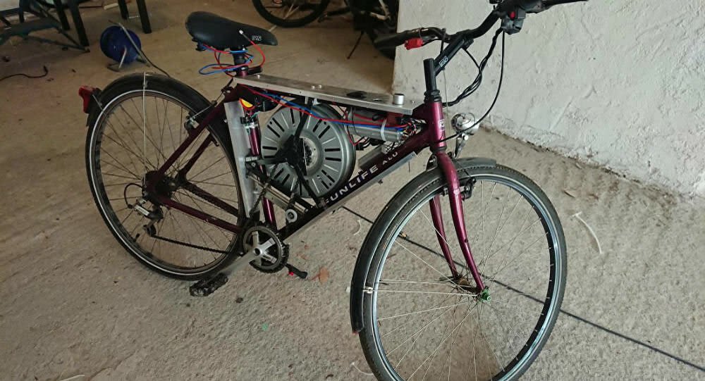 Για τη δημιουργία του χρησιμοποίησε το ηλεκτρικό μοτέρ 1.100 Watt από ένα παλιό πλυντήριο ρούχων και το έβαλε πάνω σε ένα ποδήλατο.