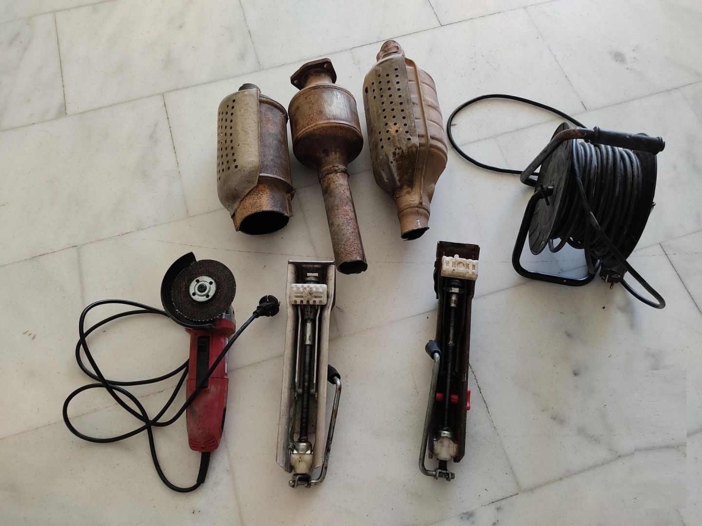 βρέθηκαν και κατασχέθηκαν, 1 τροχός κοπής μετάλλων, 2 γρύλοι ανύψωσης οχημάτων και