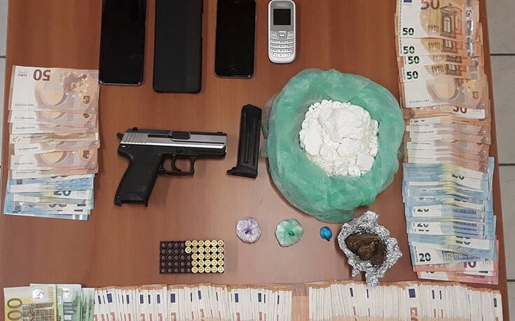 Κατασχέθηκαν οι παραπάνω ποσότητες κοκαΐνης και ακατέργαστης κάνναβης, το πιστόλι, τα φυσίγγια, το χρηματικό ποσό και τα κινητά τηλέφωνα.