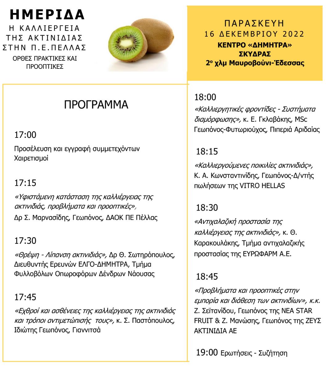 Ημερίδα για την ακτινιδιά από το Κέντρο “ΔΗΜΗΤΡΑ” Σκύδρας – Το πρόγραμμα