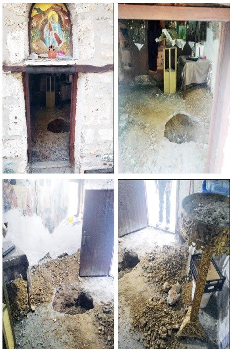 «Άγνωστος η άγνωστοι τις νυκτερινές ώρες της 24/25-8-2023 προέβησαν σε παράνομη ανασκαφή στο δάπεδο του Ιερού Ναΐσκου του Προφήτη Ηλία Χαράδρας Ημαθιας. Όποιος αντιλήφθηκε κάτι, ας ενημερώσει το Τμήμα Ασφαλείας Βέροιας, το οποίο διενεργεί προανάκριση(τηλέφωνα 100 και 2331440860).