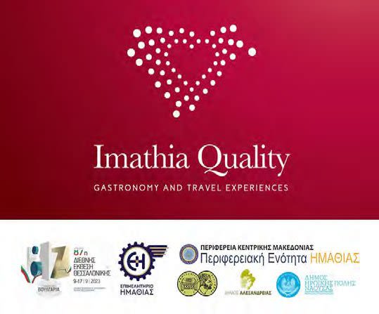 Με το «Imathia Quality» που περιλαμβάνει δράσεις Γαστρονομίας, Τουρισμού και Πολιτισμού συμμετέχει η Ημαθίας στην 87η ΔΕΘ στο Περίπτερο 16 από σήμερα Σάββατο 9 μέχρι την Κυριακή 16 Σεπτεμβρίου.