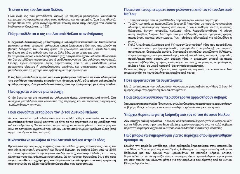 μέσω του φυλλαδίου του ΕΟΔΥ (πρώην ΚΕΕΛΠΝΟ) οδηγίες προς τους πολίτες σχετικά