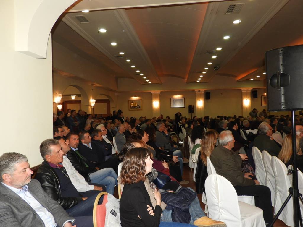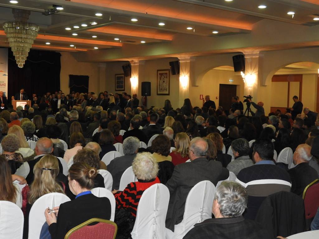 κατάμεστη και με πολλούς όρθιους, στο ξενοδοχείο “Αιγές Μέλαθρον”, ο νυν δήμαρχος και εκ νέου υποψήφιος για τον
