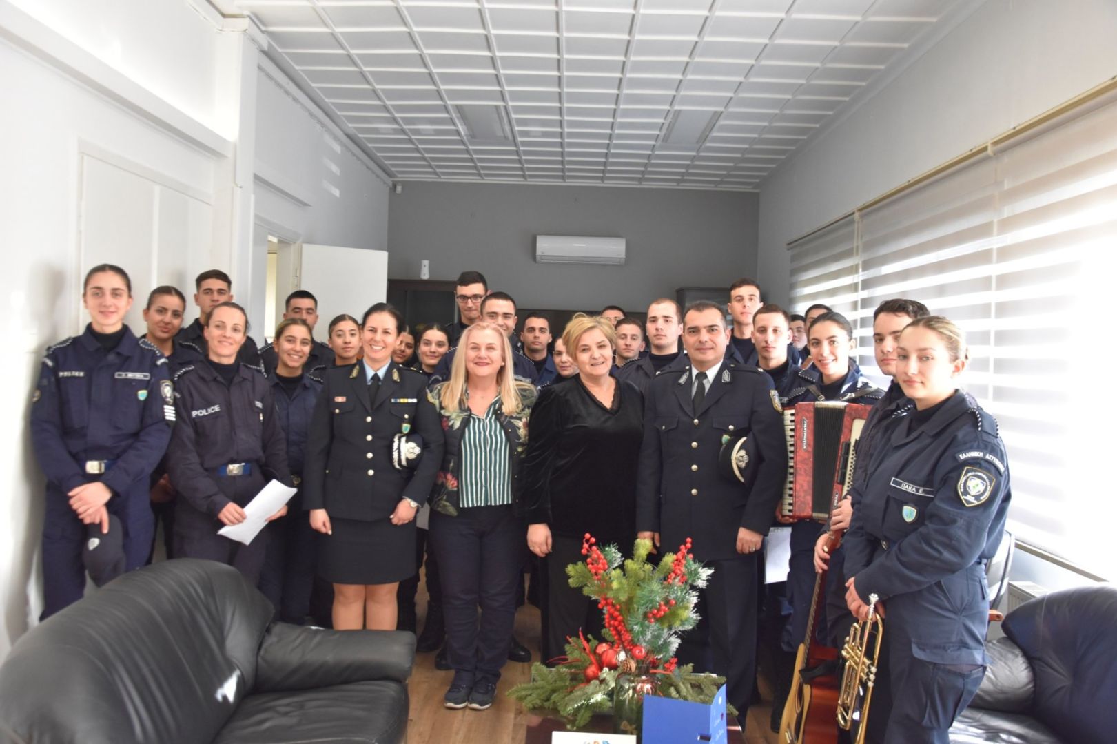 Τα χριστουγεννιάτικα κάλαντα έψαλλαν οι δόκιμοι της Σχολής Δόκιμων Αστυφυλάκων Νάουσας, παρουσία της κας Λιάγγου Ανδρονίκης, Αστυνόμου Α’ και Υποδιοικήτριας της Σχολής και του κ. Ξυλαπετσίδη Σάββα Υπαστυνόμου Β΄, στο Δημαρχείο, το μεσημέρι της Πέμπτης 19 Δεκεμβρίου.