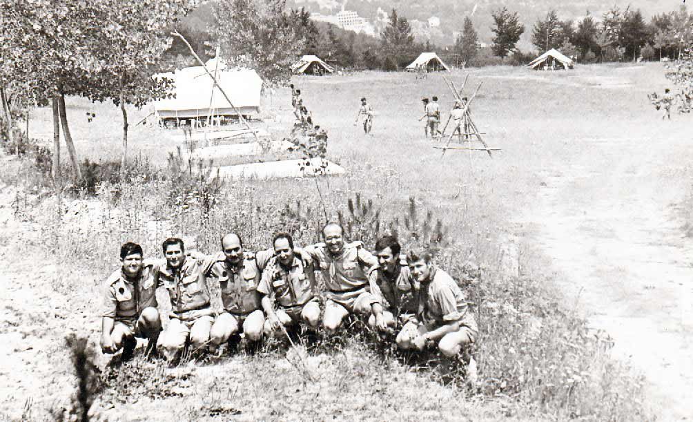 Καστανιά Βερμίου, κατασκήνωση προσκόπων, 1973 . Από αριστερά Δημήτρης Μιχαηλίδης, νβαθμοφόρος Θεσσαλονίκης , στέλεχος επιχειρήσεων, Αντώνης Βαρακλής αργότερα νεωκόρος Αγίου Γιάννη Ελεήμονος, , Δημήτρης Στυλιανίδης Αλεξάνδρεια-Αυστραλία,,Τάσος Φελλόπουλος Τοπικός Εφορος , Σπύρος Τελλίδης, Γιώργος Κόγιας.