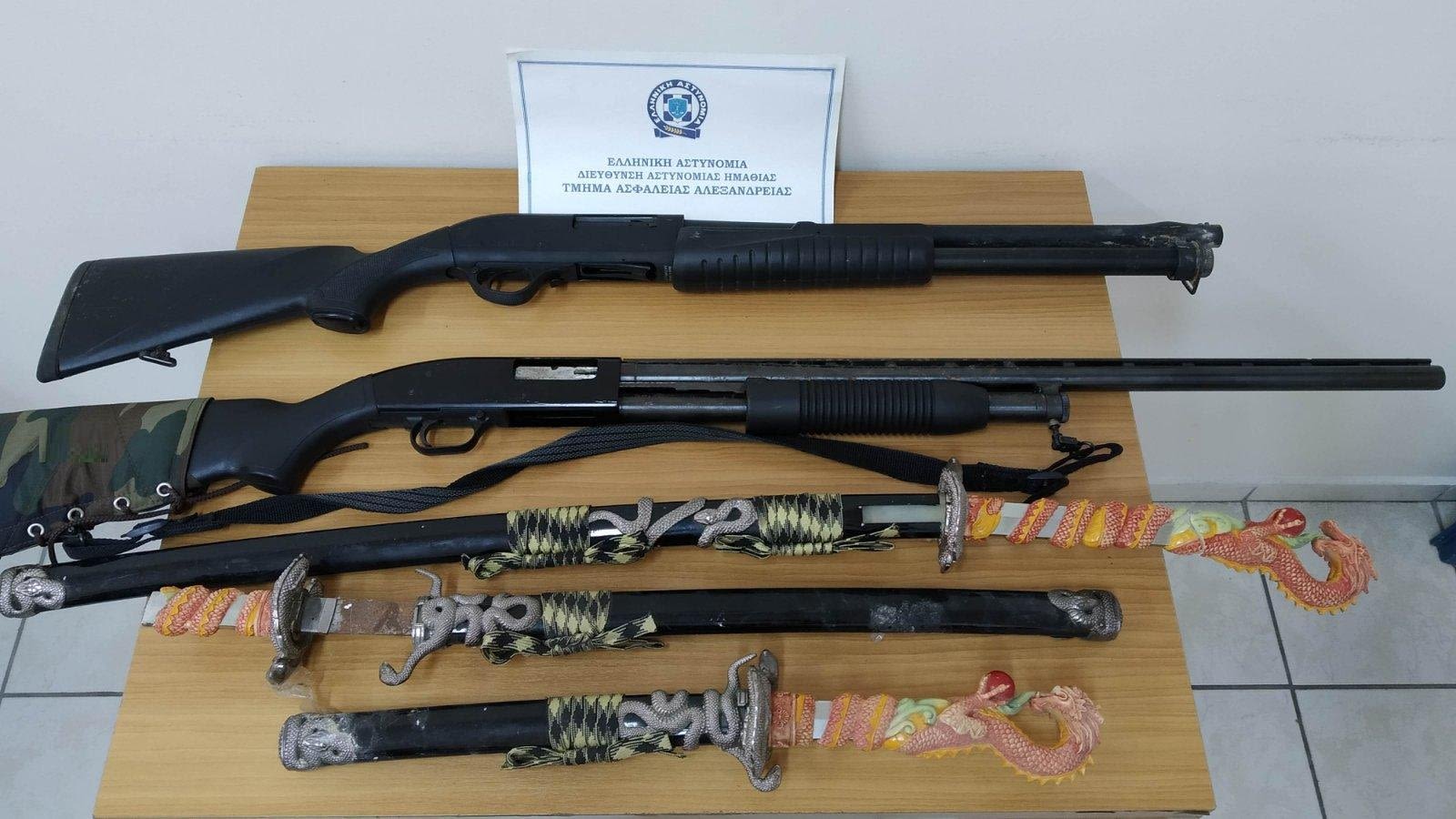 βρέθηκαν συνολικά και κατασχέθηκαν τρία σπαθιά μήκους 103, 62 και