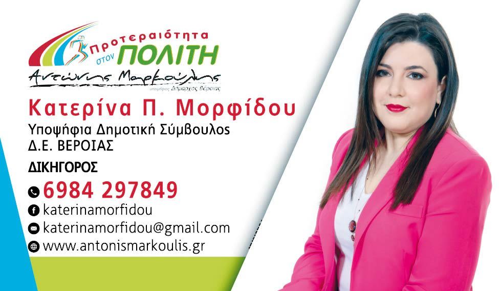 Ονομάζομαι Κατερίνα Μορφίδου, είμαι δικηγόρος, γεννήθηκα και μεγάλωσα στη Βέροια.