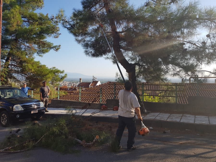 εργασίες αποψίλωσης δέντρων και καθαρισμού των σχολικών αυλών του Δήμου