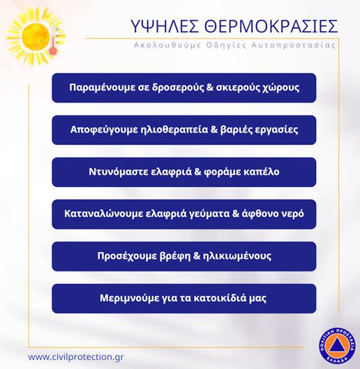Καύσωνας: Οδηγίες προστασίας από την Πολιτική Προστασία