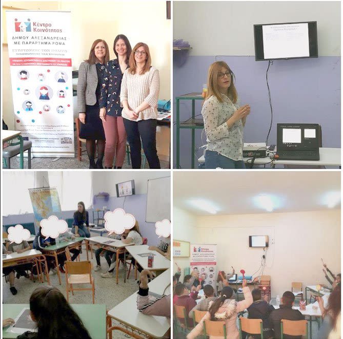 Η δράση υλοποιήθηκε από τις ψυχολόγους του «Κέντρου Κοινότητας Δήμου Αλεξάνδρειας με Παράρτημα Ρομά» και είχε ως στόχο την ευαισθητοποίηση των μαθητών στις μορφές, στην αιτιολογία, στις επιπτώσεις και στους τρόπους αντιμετώπισης του προβλήματος μέσω βιωματικών παιχνιδιών και προβολής βίντεο.