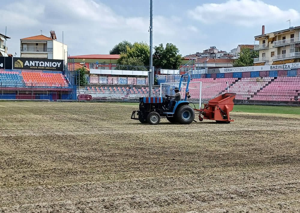 Ξεκίνησε η επανασπορά του αγωνιστικού χώρου στο Δημοτικό στάδιο της Βέροιας, υπό την επίβλεψη των Κώστα Καρακώστα και Αντώνη Βασιλακάκη.