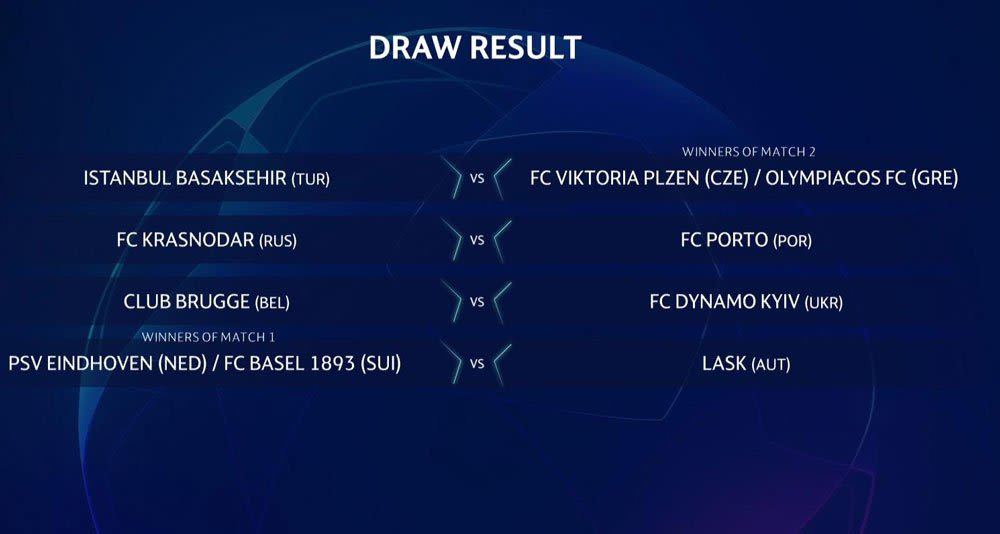 Οι Πειραιώτες γνώριζαν εκ των προτέρων ότι θα αντιμετωπίσουν μία εκ των Μπριζ, Κράσνονταρ, Μπασακσεχίρ και ΛΑΣΚ Λίντσερ, με την κληρωτίδα να βγάζει τελικά τους Τούρκους.