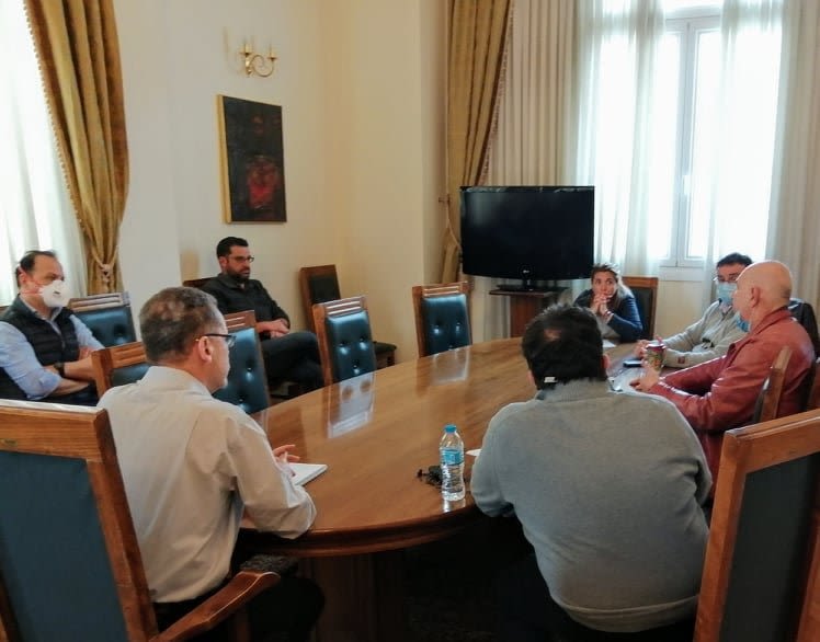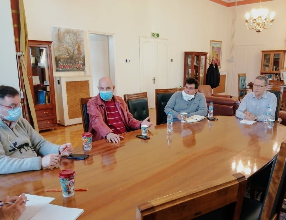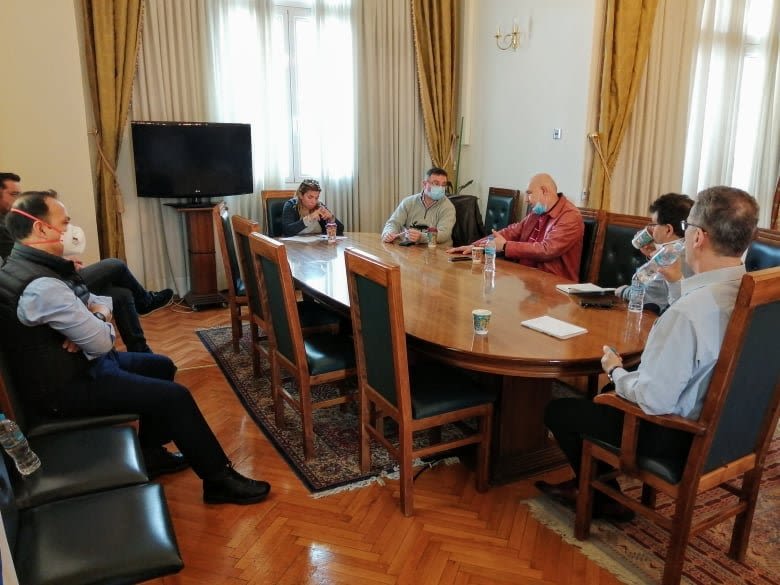 Συνάντηση είχε ο δήμαρχος Κοζάνης, Λάζαρος Μαλούτας, με κλιμάκιο του ΕΟΔΥ, αποτελούμενο από τους κ.κ. Ηλιόπουλο, Δελλή και Τσέκου, το πρωί της Κυριακής 29 Μαρτίου 2020, στο Δημαρχείο.