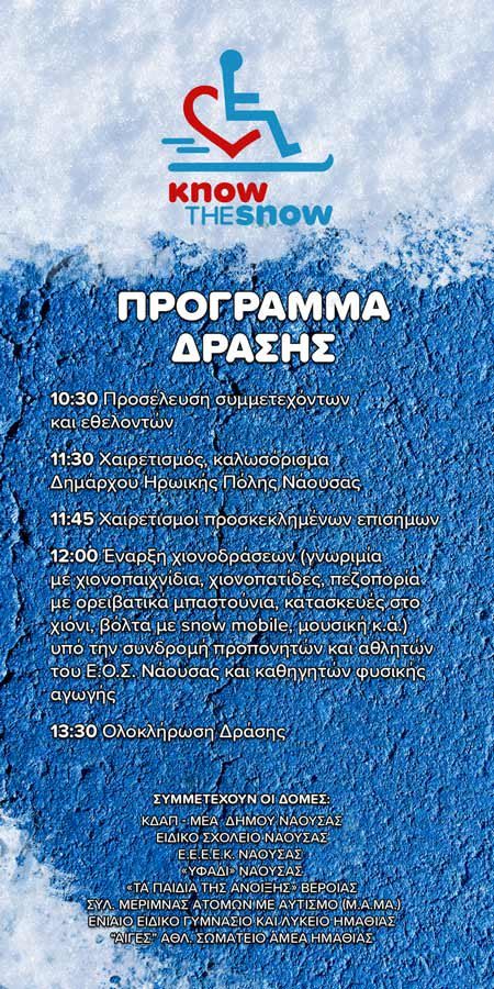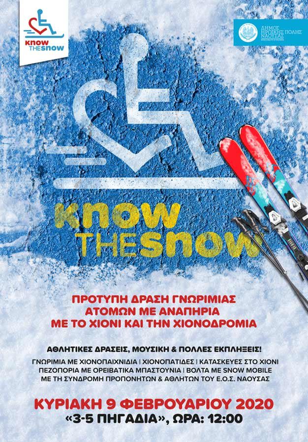 πρωτοβουλία του Δημάρχου κ. Νικόλα Καρανικόλα, την Κυριακή 9 Φεβρουαρίου, στo Χιονοδρομικό Κέντρο «3-5 Πηγάδια», με τίτλο «know the snow», η οποία αφορά στην γνωριμία Ατόμων με Αναπηρία με το χιόνι, την