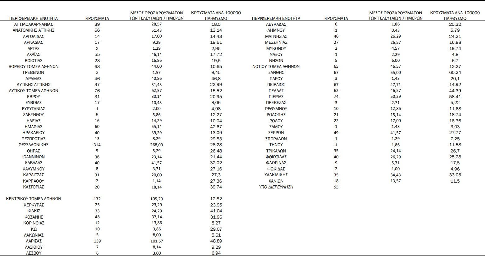 Τα νέα κρούσματα στην Ημαθία είναι 60.