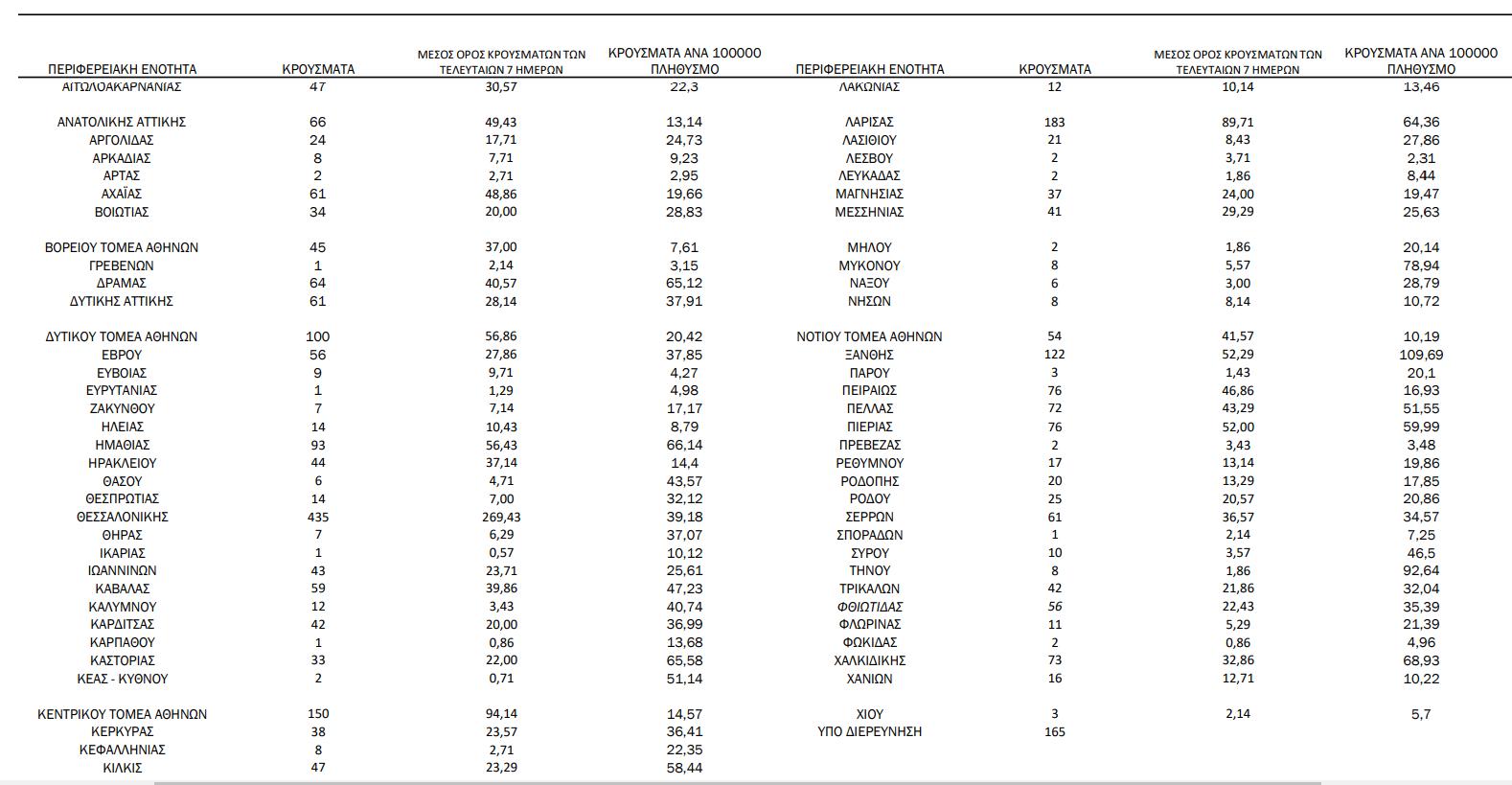 Με βάση τα επιβεβαιωμένα κρούσματα των τελευταίων 7 ημερών,