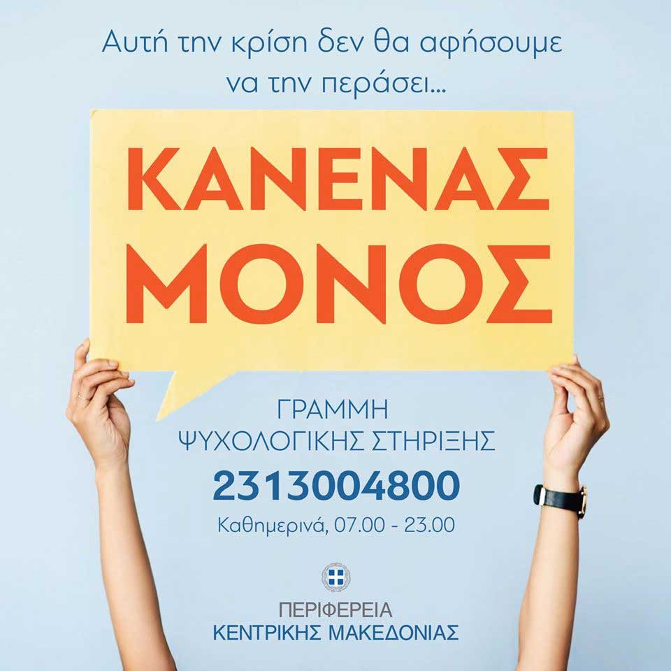 Κορονοϊός: Γραμμή ψυχολογικής στήριξης απο την Περιφέρεια Κεντρικής Μακεδονίας – ΚΩΣΤΑΣ ΚΑΛΑΪΤΖΙΔΗΣ: “ΚΑΝΕΝΑΣ ΔΕΝ ΠΡΕΠΕΙ ΝΑ ΑΙΣΘΑΝΕΤΑΙ ΜΟΝΟΣ”
