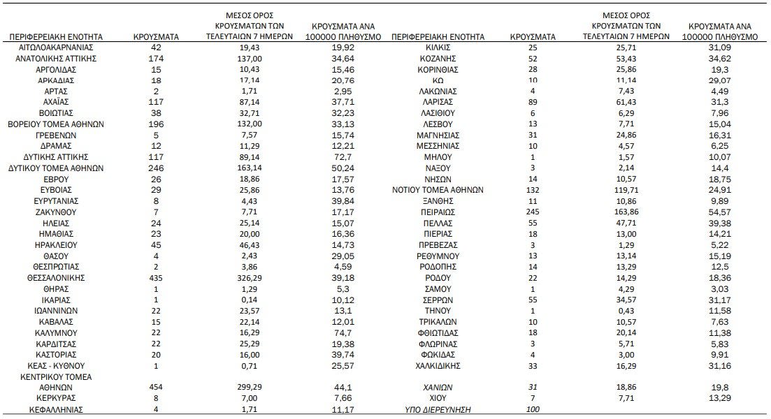 Η κατανομή των 3.217 νέων εγχώριων κρουσμάτων ανά
