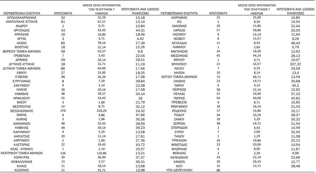 Η κατανομή των 2.175 νέων εγχώριων κρουσμάτων ανά