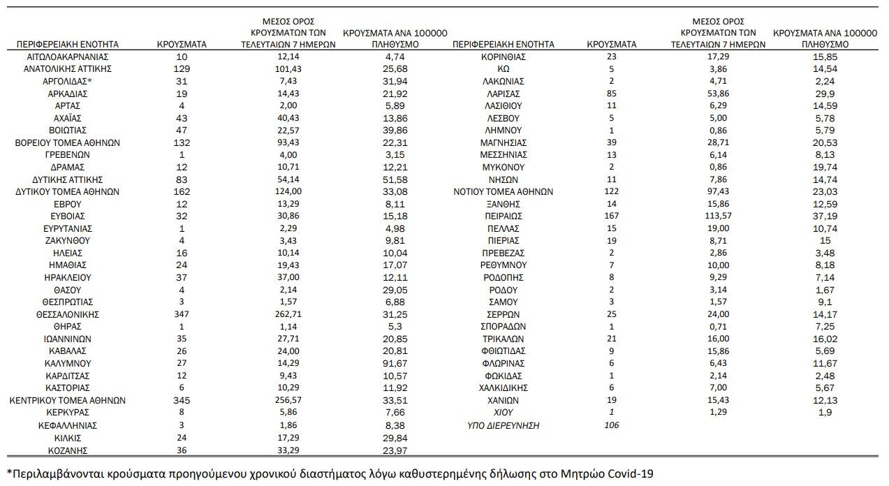 Η κατανομή των 2.427 νέων εγχώριων κρουσμάτων ανά