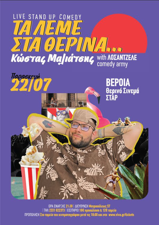 Αυτή τη συνάντηση συμβολίζουν και οι καλοκαιρινοί κινηματογράφοι, με την απλότητα, την αμεσότητα και το θετικό κλίμα που τους διακρίνει. Πόσο μάλλον, αν παρακολουθείς ένα τόσο αγαπημένο κωμικό, όπως ο Κώστας Μαλιάτσης, όπου μέσα από τα κείμενα του, θα γελάσεις με την ψυχή σου.