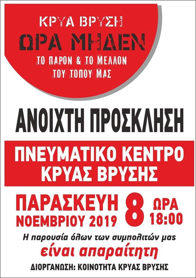 κάλεσμα, στους πολίτες της Κρύας Βρύσης και της Δημοτικής Ενότητας απευθύνει ο