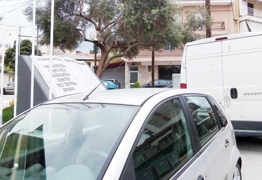 Κρυμμένο από σταθμευμένα αυτοκίνητα το Μνημείο Μικρασιατών Προσφύγων στο Τσερμένι
