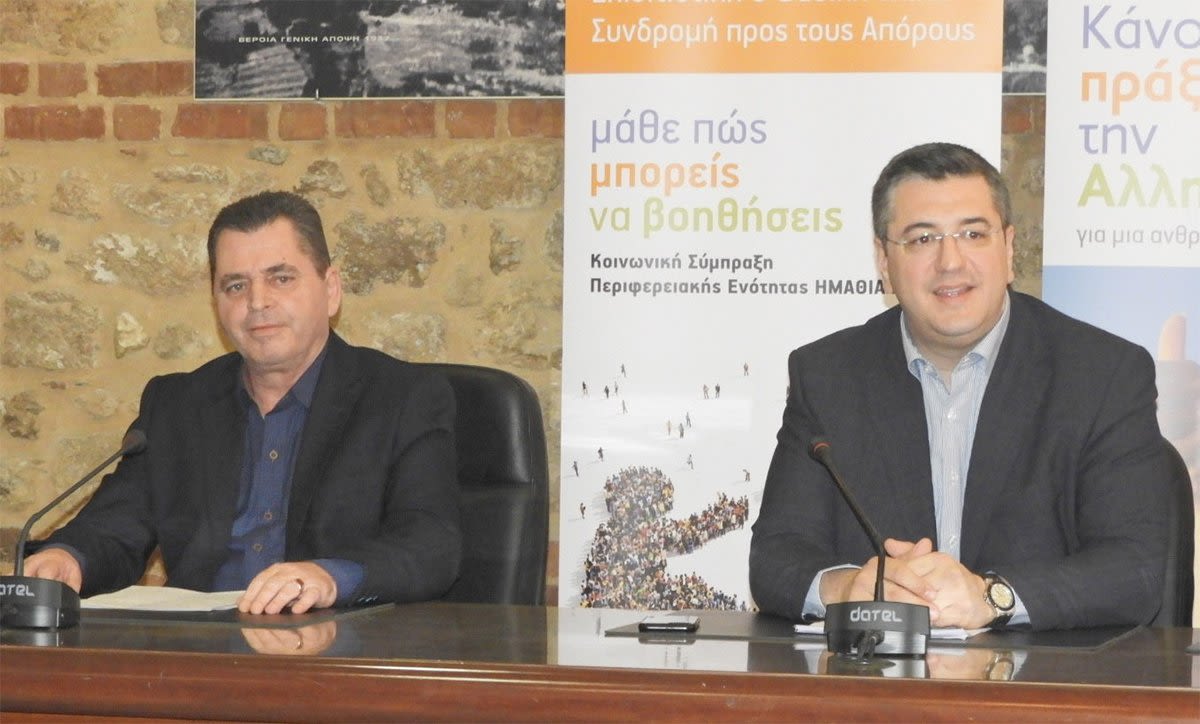 Τον απολογισμό της πρώτης φάσης και την έναρξη του δεύτερου κύκλου υλοποίησης του προγράμματος επισιτιστικής βοήθειας από το Ταμείο Ευρωπαϊκής Βοήθειας προς απόρους, έκαναν ο Περιφερειάρχης Κεντρικής Μακεδονίας Απ. Τζιτζικώστας και ο αντιπεριφερειάρχης Ημαθίας Κώστας Καλαϊτζίδης σε συνέντευξη Τύπου χθες το μεσημέρι στη Βέροια, παρουσία των περιφερειακών συμβούλων Νίκης Καρατζιούλα και Θεόφιλου Τεληγιαννίδη, του Διευθυντή Υγείας και Κοινωνικής Μέριμνας της Π.Ε. Ημαθίας και της Ελένης Σιαμίδου από το Δήμο Νάουσας.
