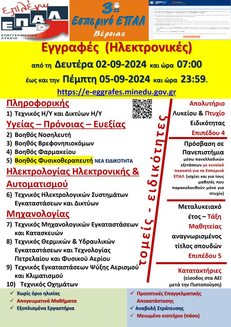 • Οι σπουδές στο Εσπερινό ΕΠΑΛ Βέροιας είναι ΔΩΡΕΑΝ.