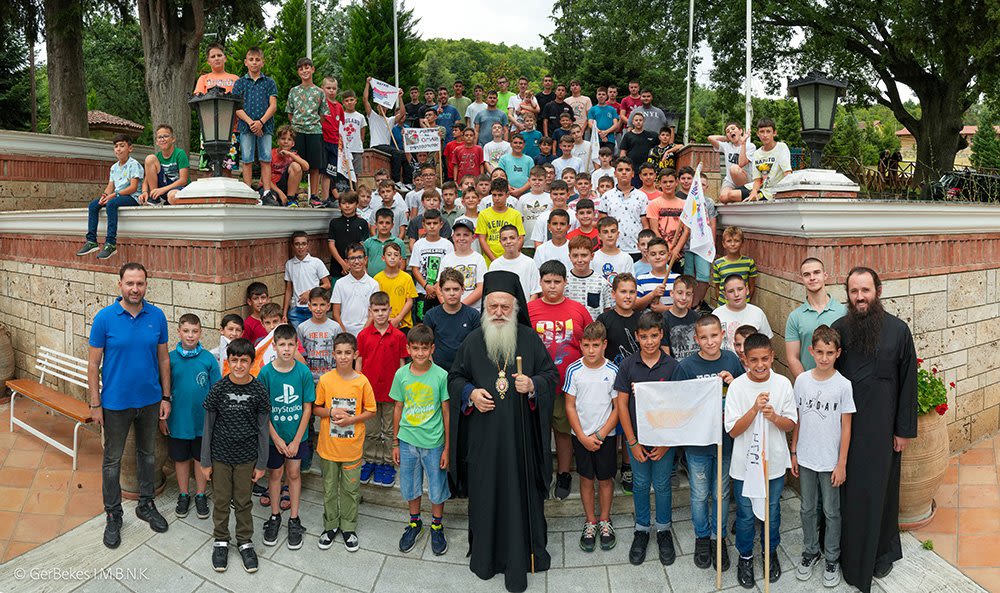 Μετά την τέλεση του Αγιασμού, ο Σεβασμιώτατος Μητροπολίτης μας κ. Παντελεήμων, ευλόγησε την τράπεζα και μίλησε πατρικά στα παιδιά, τονίζοντας την ευκαιρία που τους δίδει η τοπική μας Εκκλησία να γνωρίσουν τις αλήθειες της πίστεως μας, να αποκτήσουν εμπειρία κοινοτικής ζωής και φιλίες, να εξασκηθούν σωματικά και να ωφεληθούν πνευματικά κάτω από τη σκέπη της Παναγίας Δοβρά.