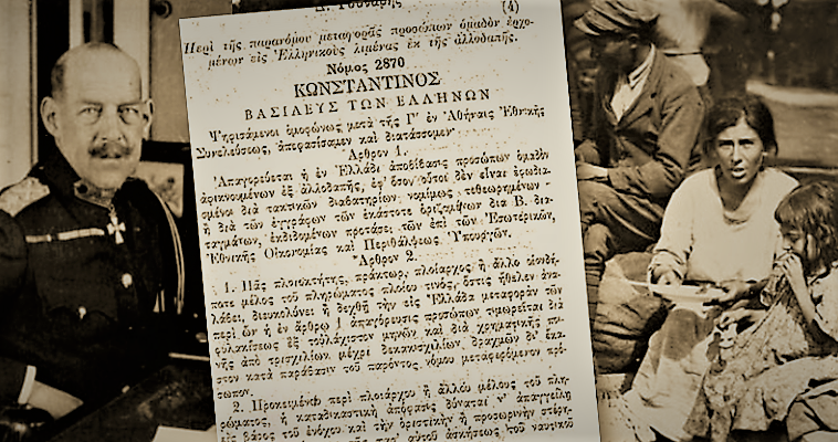 Πέραν του γενικού κι αόριστου (όπως θα μπορούσε να ισχυριστεί κάποιος) νόμου 2870/1922, υπάρχουν πολλές υστερόχρονες πηγές που δείχνουν τη σθεναρή βούληση των τότε μοναρχικών κυβερνήσεων (Δ. Γούναρη και στη συνέχεια Πέτρου Πρωτοπαπαδάκη) να αποτρέψουν την άφιξη προσφύγων από τη Μικρά Ασία εξειδικευμένα. Ενδεικτικά παραθέτουμε τα ακόλουθα: