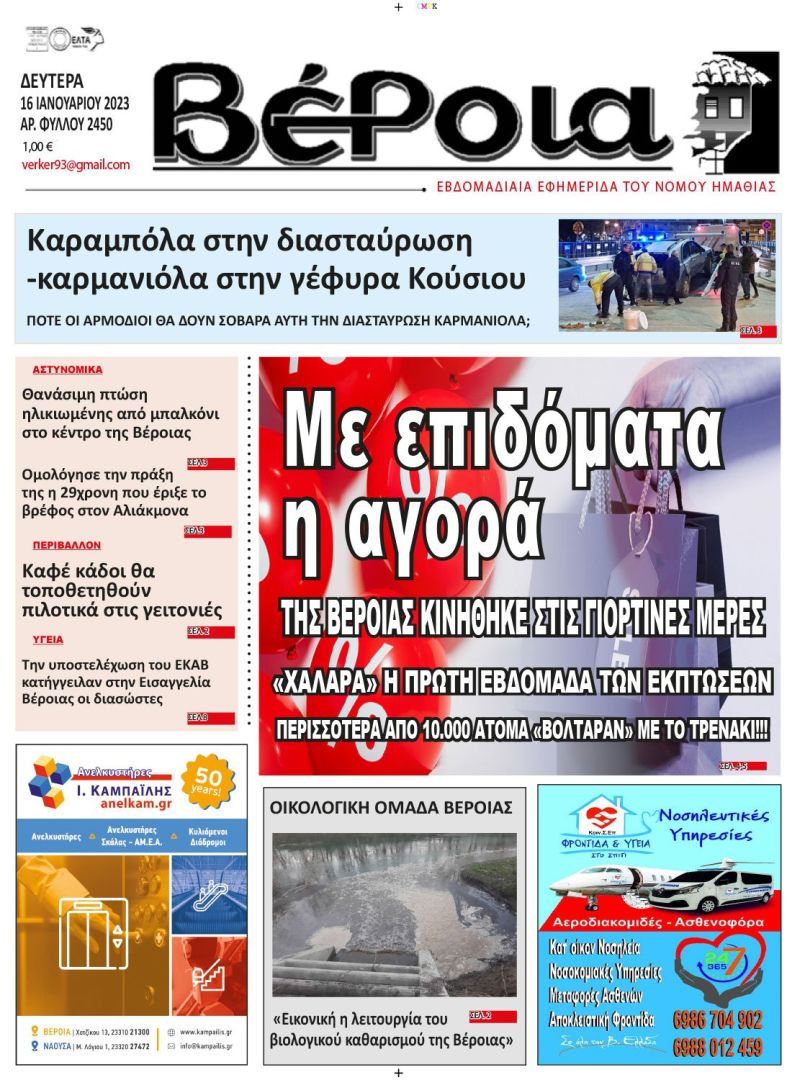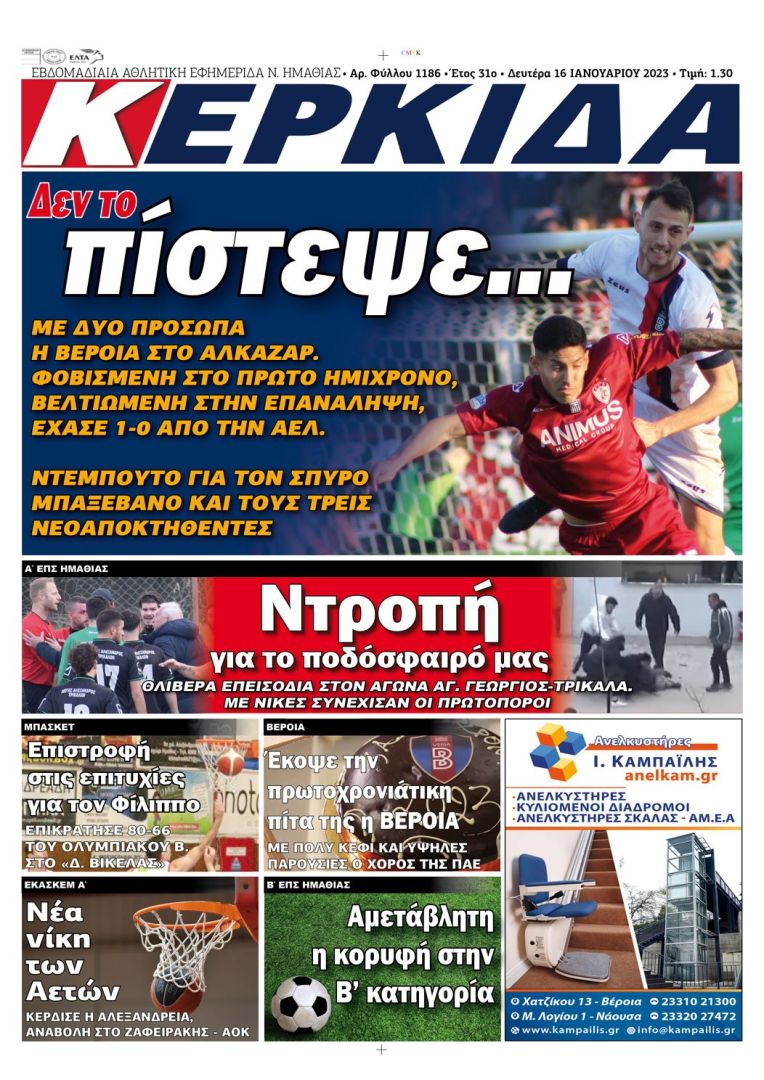 Κυκλοφορούν αύριο (16/1/2023) οι εφημερίδες ΒΕΡΟΙΑ – ΚΕΡΚΙΔΑ