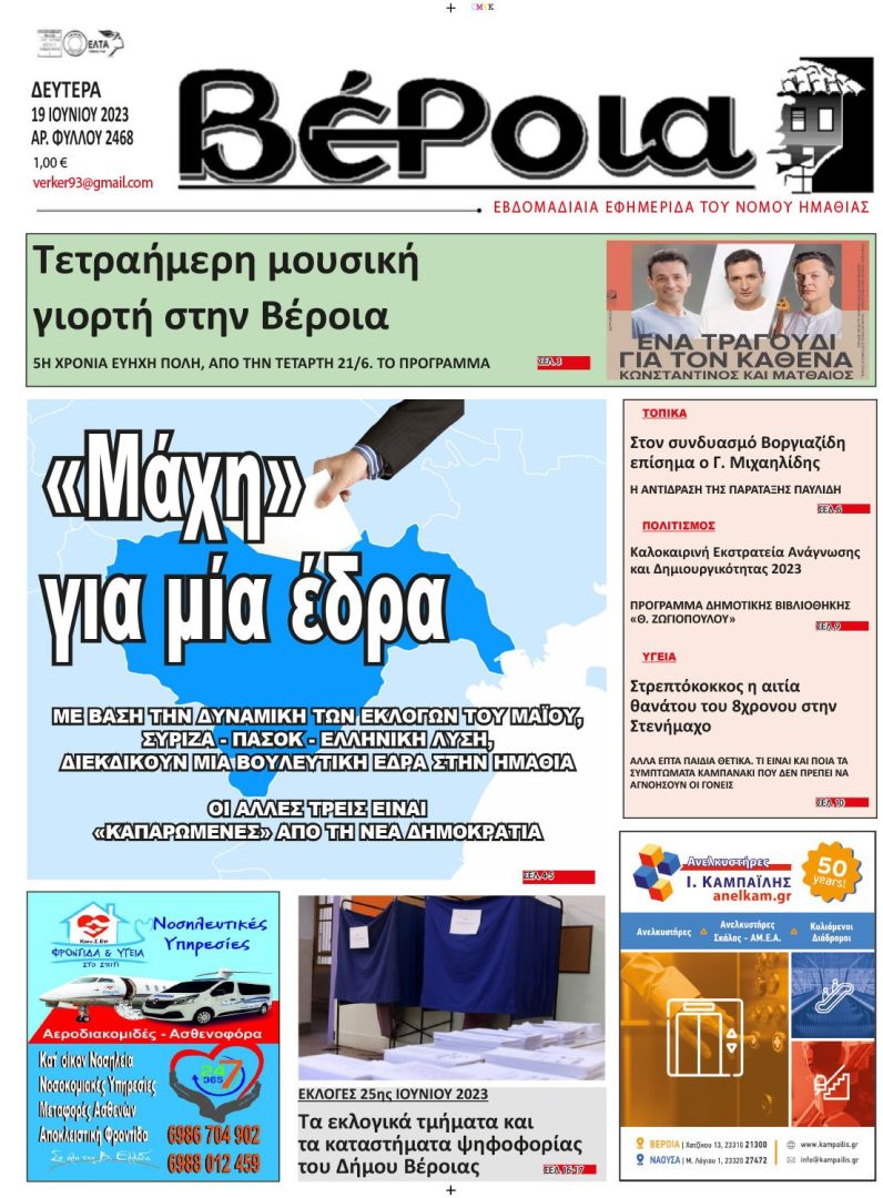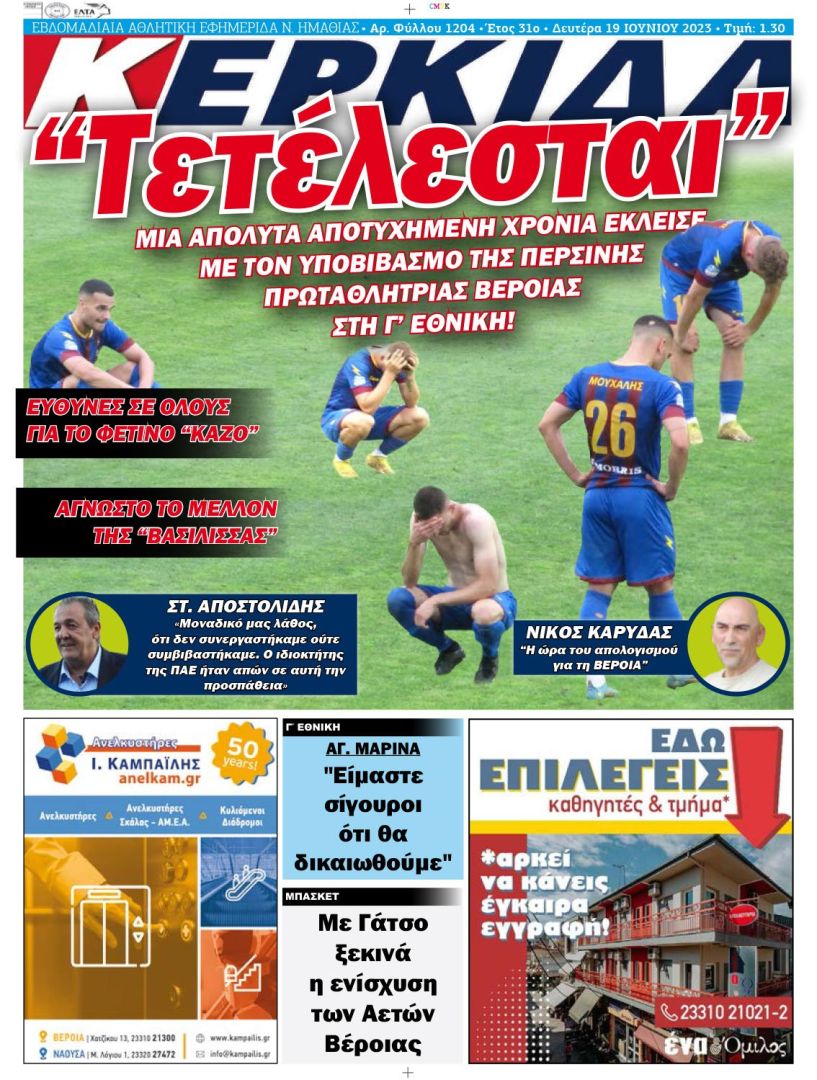 Κυκλοφορούν αύριο οι εφημερίδες ΒΕΡΟΙΑ – ΚΕΡΚΙΔΑ (19/6/2023)