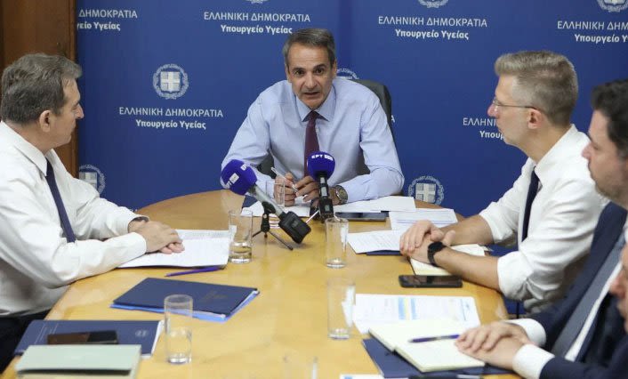 Πολύ παραγωγική χαρακτήρισε την πρώτη σύσκεψη με τη νέα ηγεσία του υπουργείου Υγείας ο πρωθυπουργός Κυριάκος Μητσοτάκης, ευχόμενος καλή δύναμη και καλή επιτυχία στον υπουργό Μιχάλη Χρυσοχοίδη και στα στελέχη κατά την χθεσινή του επίσκεψη στο Υπουργείο. «Έχουμε αναλάβει όλοι μαζί ένα μεγάλο εθνικό στοίχημα: η χώρα να αποκτήσει ένα Εθνικό Σύστημα Υγείας αντάξιο των προσδοκιών των Ελλήνων πολιτών. Έχουμε έναν εξαιρετικά αναλυτικό και λεπτομερή προγραμματισμό για τις παρεμβάσεις που θέλουμε να κάνουμε, οι οποίες έχουν περιγραφεί και στο προεκλογικό μας πρόγραμμα. Δεν αναφέρομαι μόνο στην ανάγκη να προσθέσουμε τακτικές προσλήψεις στο δυναμικό του Εθνικού Συστήματος Υγείας, αλλά και να αναμορφώσουμε ριζικά υποδομές υγείας», τόνισε ο πρωθυπουργός.
