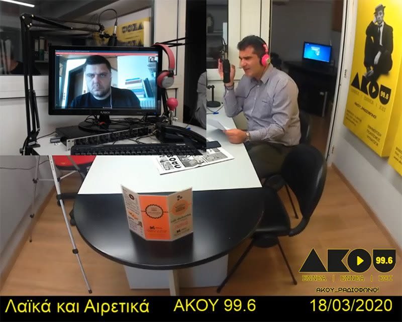 Ακούστε στην καθημερινή εκπομπή του ΑΚΟΥ 99,6 «Λαϊκά και Αιρετικά» της Τετάρτης 18 Μαρτίου 2020, με τους Ζήση Μ. Πατσίκα στο στούντιο και Νίκο Βουδούρη σε ζωντανή σύνδεση από το σπίτι του: