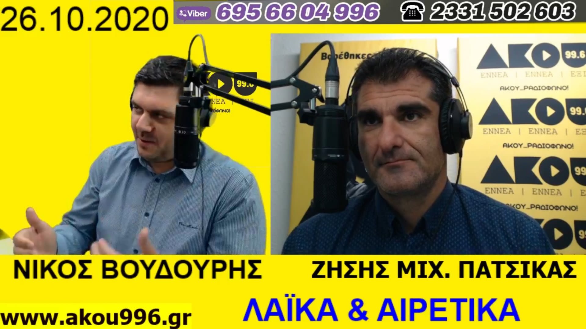 Ακούστε στην εκπομπή του ΑΚΟΥ 99,6 «Λαϊκά και Αιρετικά» της Δευτέρας 26 Οκτωβρίου 2020, με τους Ζήση Μιχ. Πατσίκα και Νίκο Βουδούρη: