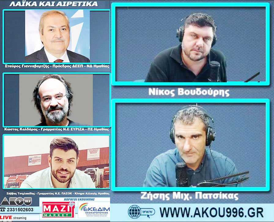 Καλεσμένοι της πρώτης εκπομπής της σεζόν ήταν ο Πρόεδρος της ΔΕΕΠ Ημαθίας της ΝΔ, Σταύρος Γιανναβαρτζής, ο Γραμματέας της Ν.Ε. ΣΥΡΙΖΑ-ΠΣ Ημαθίας Κώστας Καλδάρας και ο Γραμματέας Ν.Ε.ΠΑΣΟΚ-Κίνημα Αλλαγής, Σάββας Τσιχλακίδης.