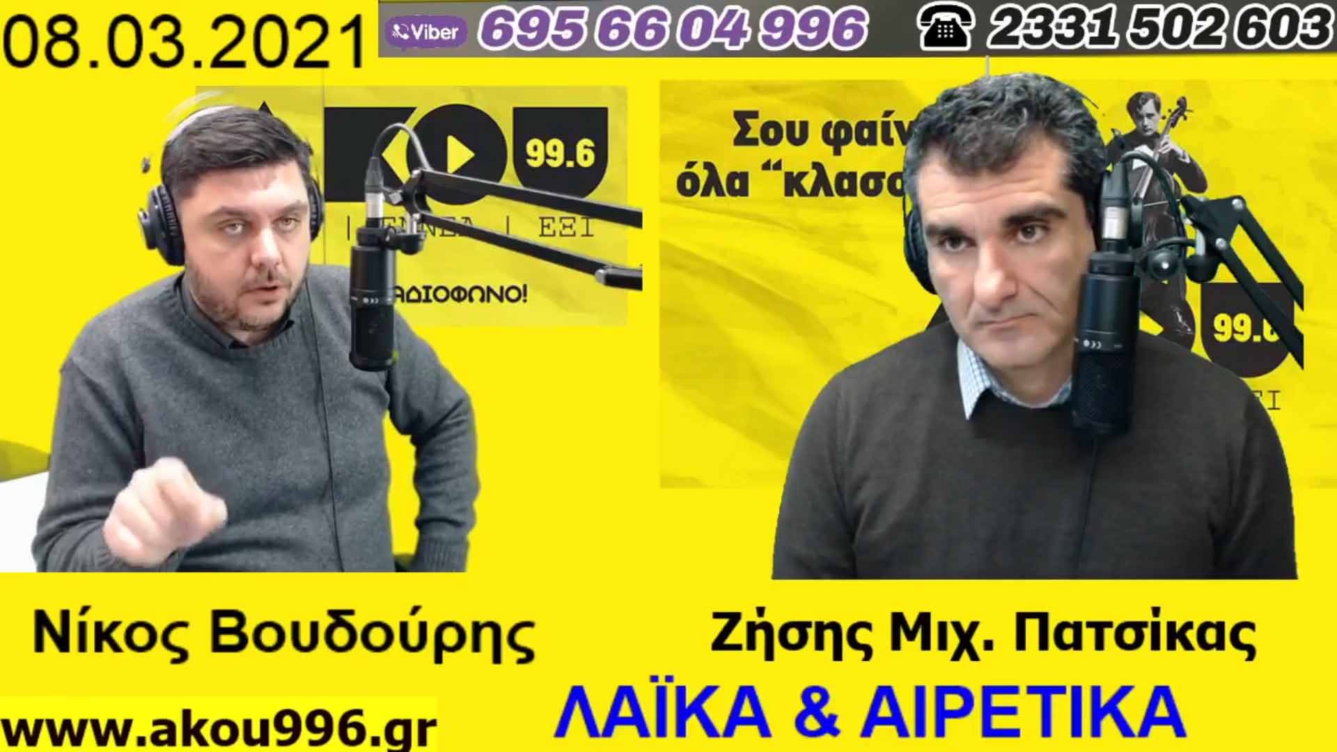 99,6 «Λαϊκά και Αιρετικά» της Δευτέρας 8 Μαρτίου 2021, με τους Ζήση Μιχ. Πατσίκα και Νίκο