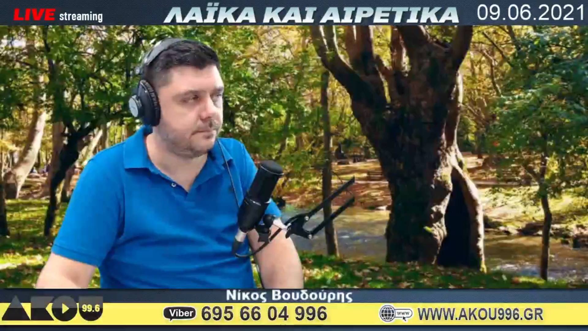 εκπομπή του ΑΚΟΥ 99,6 «Λαϊκά και Αιρετικά» της Τετάρτης 9 Ιουνίου 2021, με το Νίκο Βουδούρη: